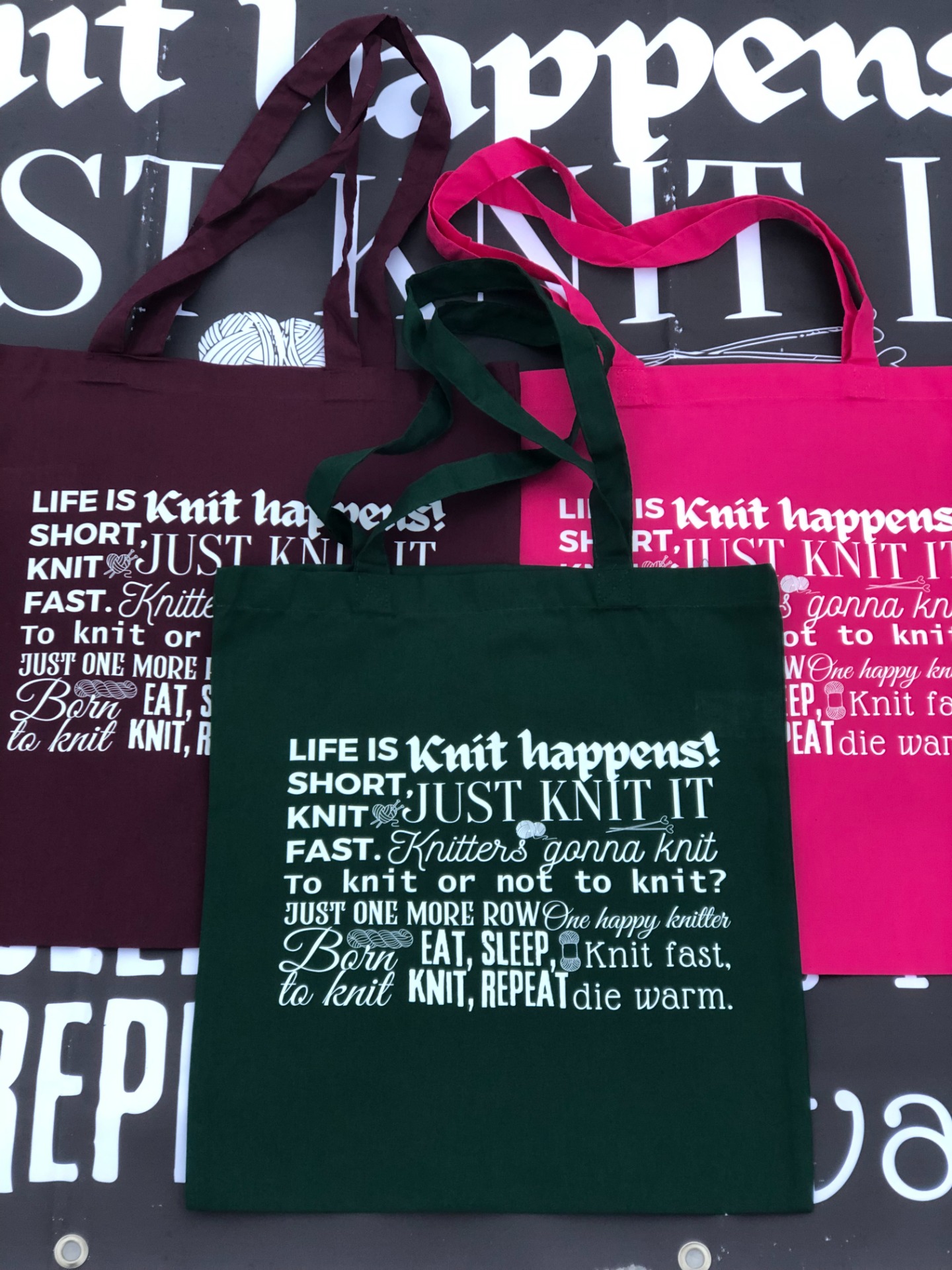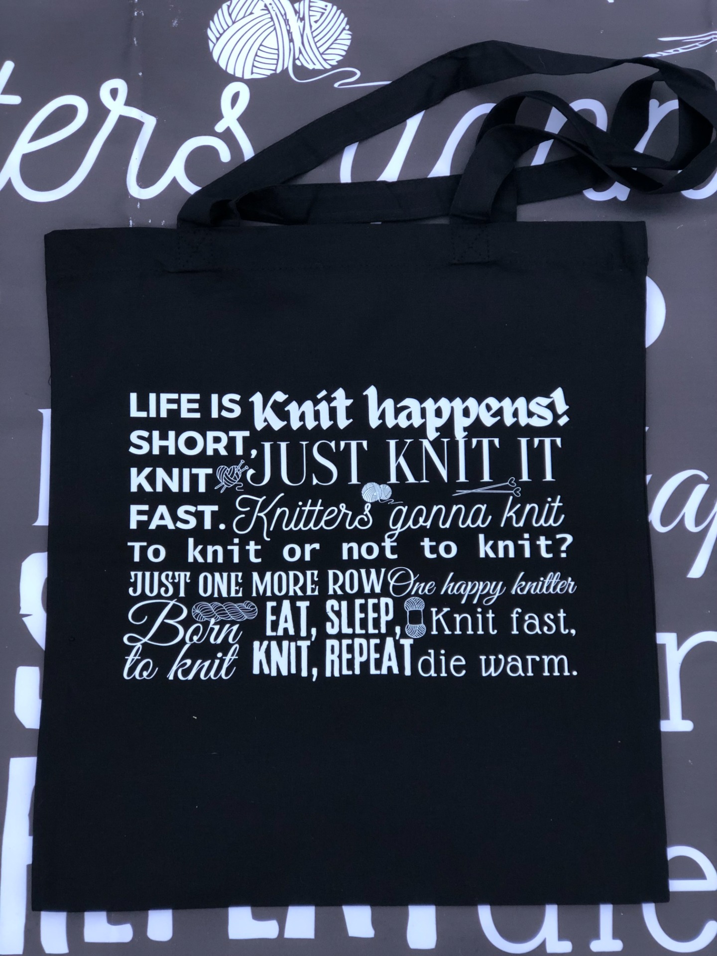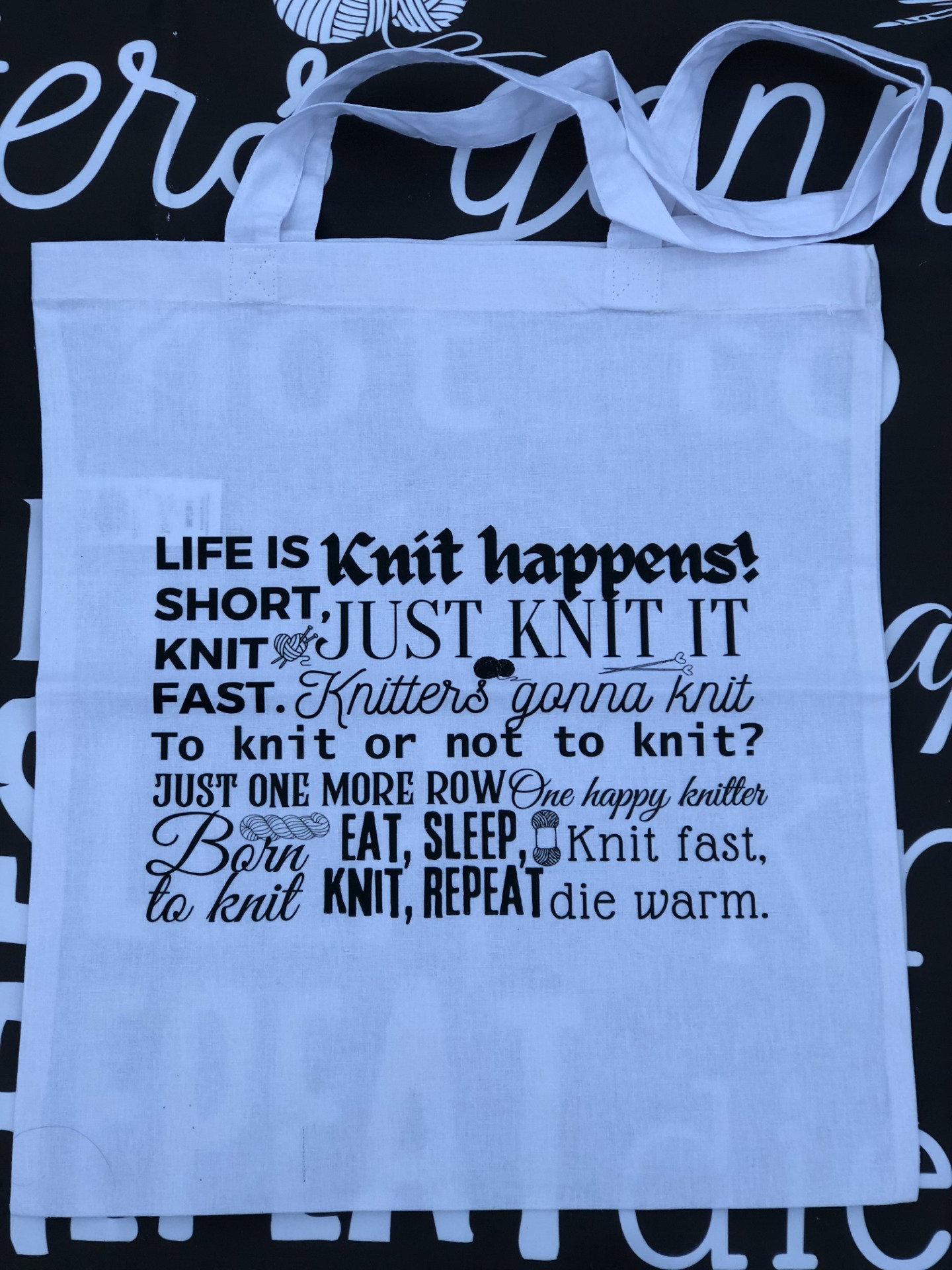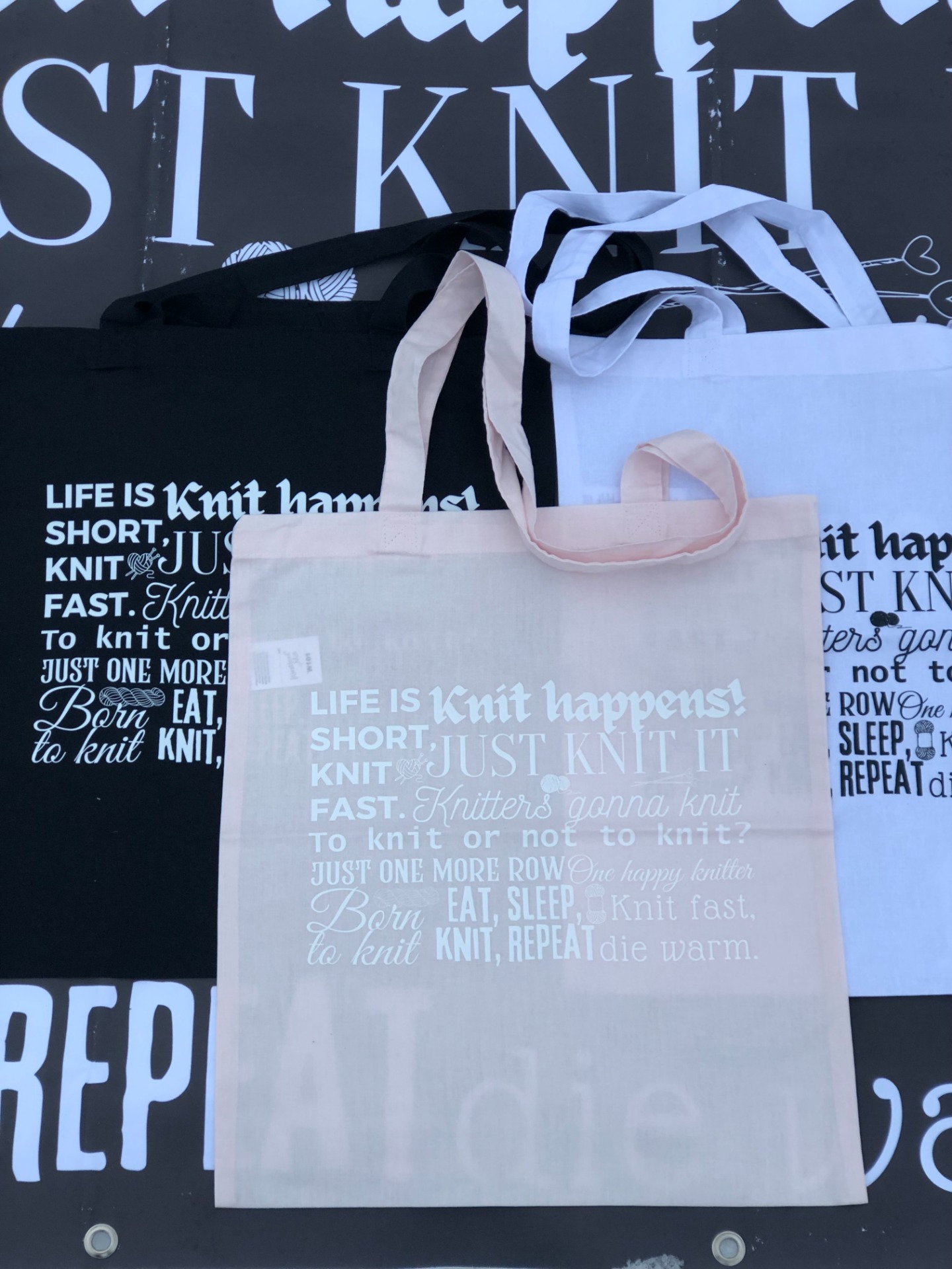Ihana puuvillakassi Neulootikoille, Lankahamstereille ja Himoneulojille sopivalla englanninkielisellä tekstiprintillä. Printti suunniteltu Varpaisjärvellä, kassit painettu Haminassa.
